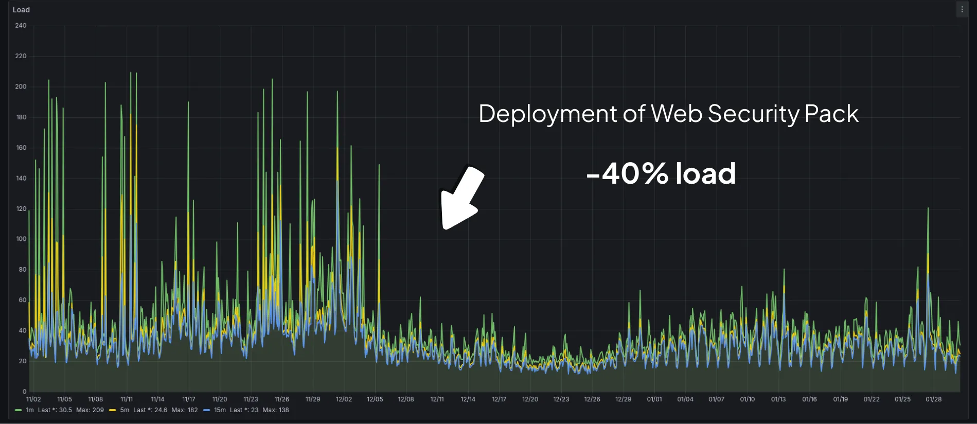Real-world example: 40% reduction in load since deploying Web Security Pack